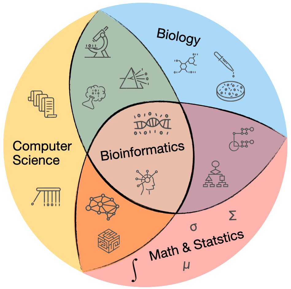 Bioinformatics sits at the intersection of biology, computer science, mathematics and statistics.