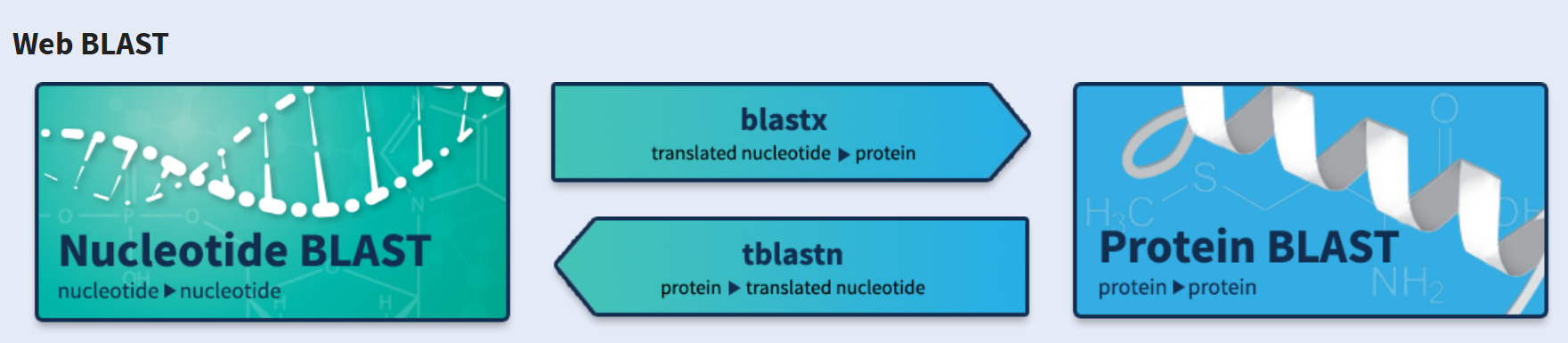 - tBLASTn: Compares a protein query sequence against a dynamically translated nucleotide sequence database in all six frames.