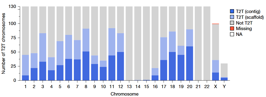 - Assemblies provided complete sequence continuity for highly complex loci like MHC, and fully resolved 1,246 human centromeres