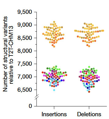 - Phased assemblies identified 188,500 SVs, 6.3 million indels, and 23.9 million single-nucleotide variants