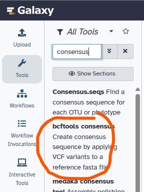 Convert your bcf file to a fasta file with the bcftools consensus tool. Galaxy should remember your reference genome.